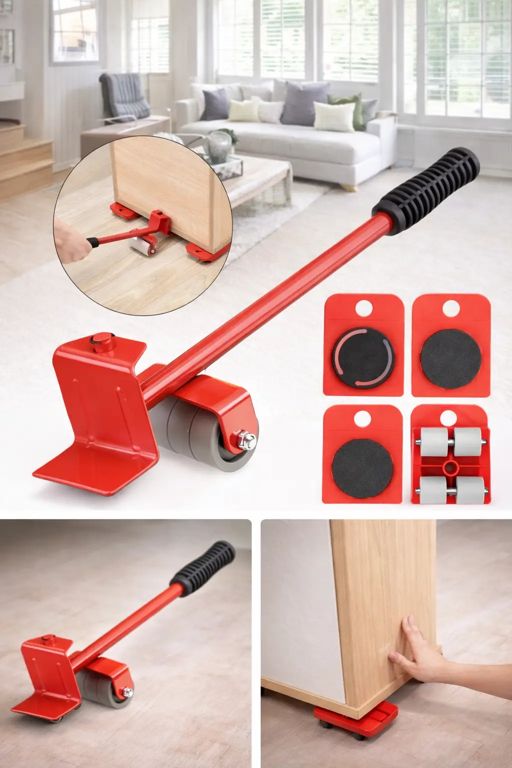 Herramienta ideal para mover muebles pesados sin esfuerzo. Cada soporte cuenta con ruedas resistentes que permiten desplazar heladeras, lavarropas, muebles y objetos grandes desde las cuatro esquinas. Perfecto para limpiezas profundas, mudanzas y reorganización del hogar.